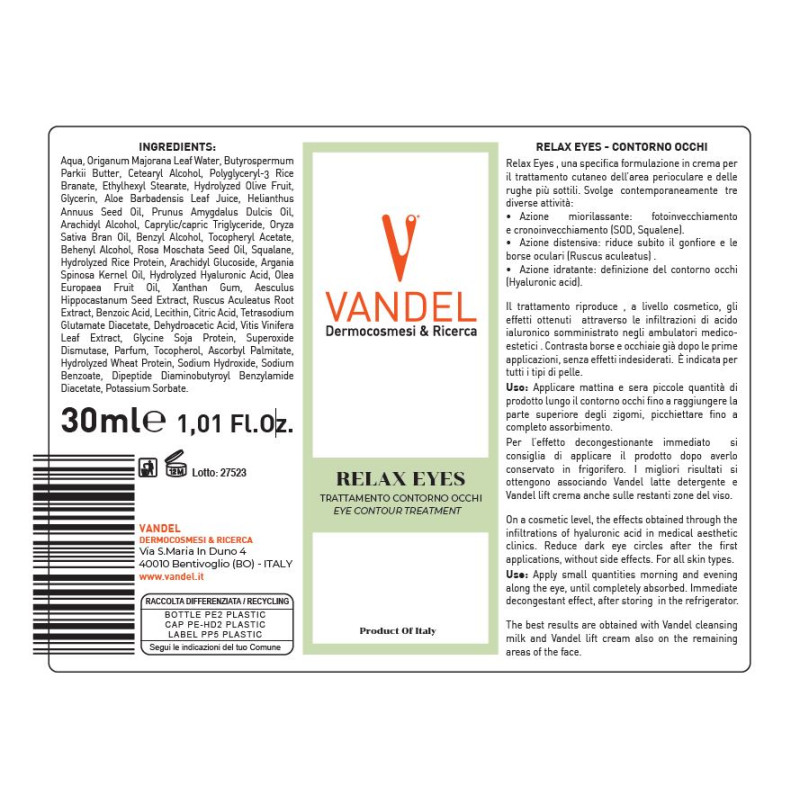 VANDEL RELAX EYES TRATTAMENTO CONTORNO OCCHI 30 ML.